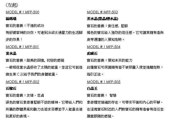 能量石是一種特殊的寶石,一般相信其具有特殊的能量。日本、台灣熱賣的Masaki Matsushima眼鏡,今年新春推出最新能量石系列鏡框。此系列一共有6種不同寶石,象徵6種不同的精神力量。消費者可依個人的心願選配,為新的2010年帶來好運勢 !
